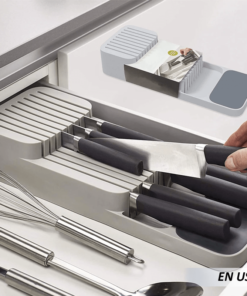 Organizador de cuchillos 2 niveles con diseño de ahorro de espacio es perfecta para organizar sus cuchillos de cocina, guárdalo en el cajón para mantenerlos seguros, fuera de la encimera y hacer que encontrar lo que necesitas sea fácil.
