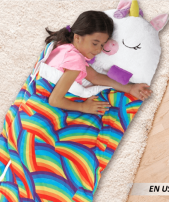 Peluche saco para dormir infantil es ideal para ver películas, jugar, pijamadas, leer libros, además para fiestas de pijamas y acampar. Posee un diseño compacto y el asa de fácil agarre significan que los más pequeños pueden llevar fácilmente el saco de dormir a cualquier lugar.